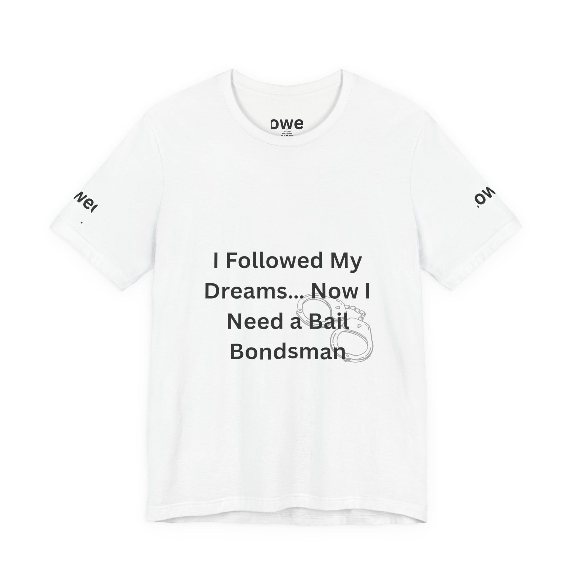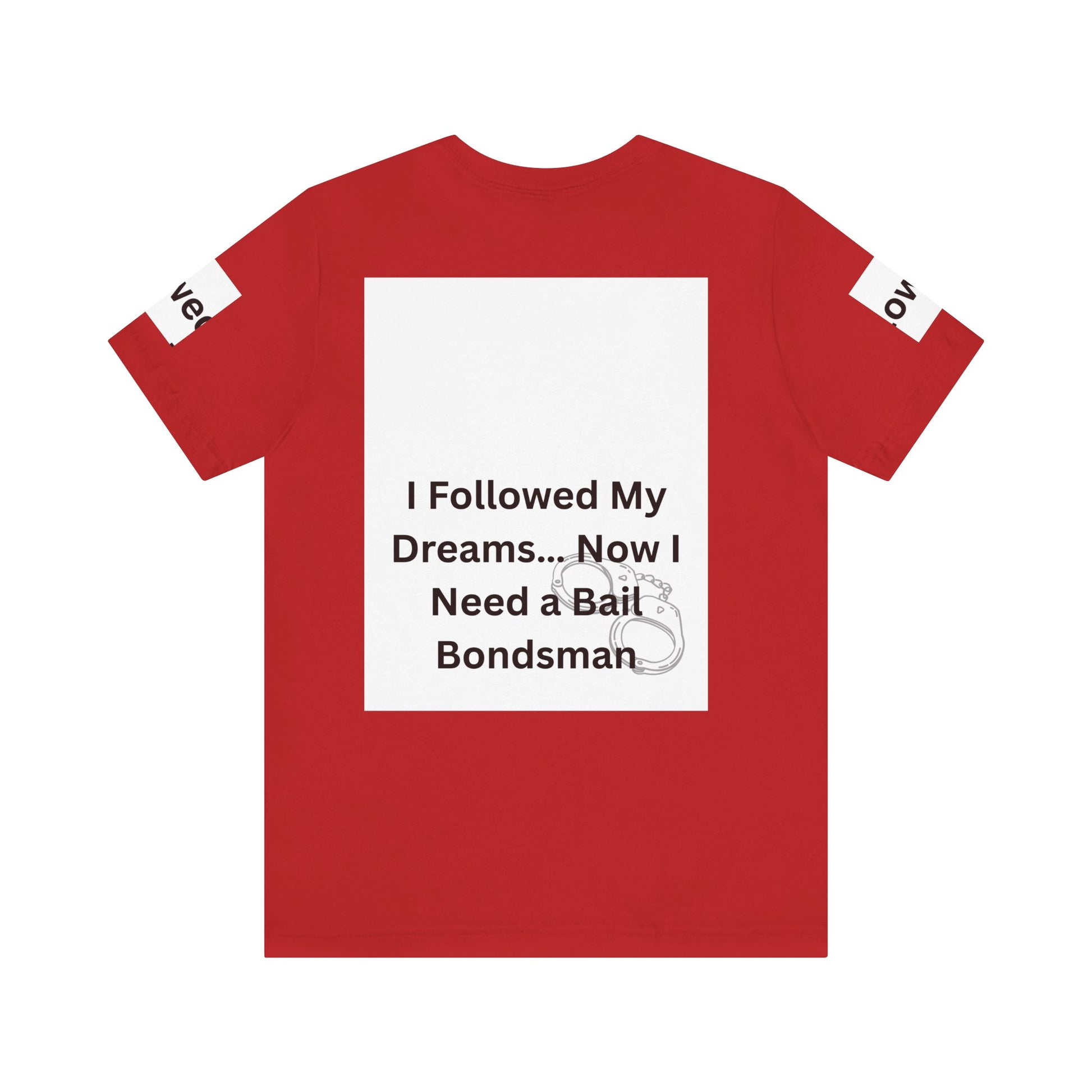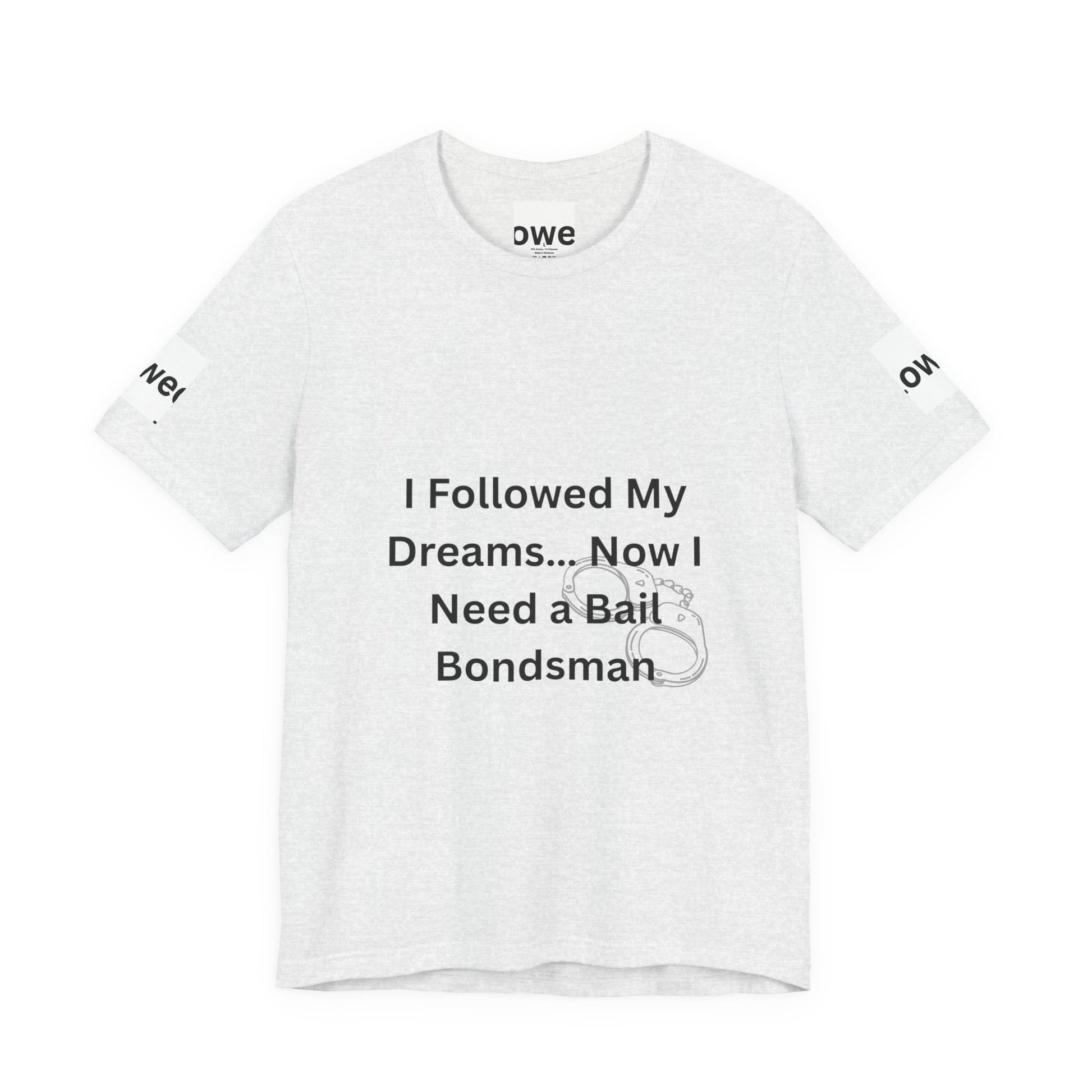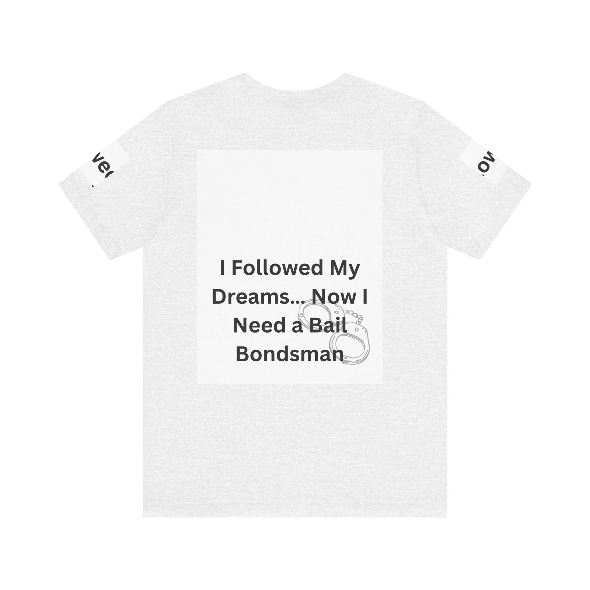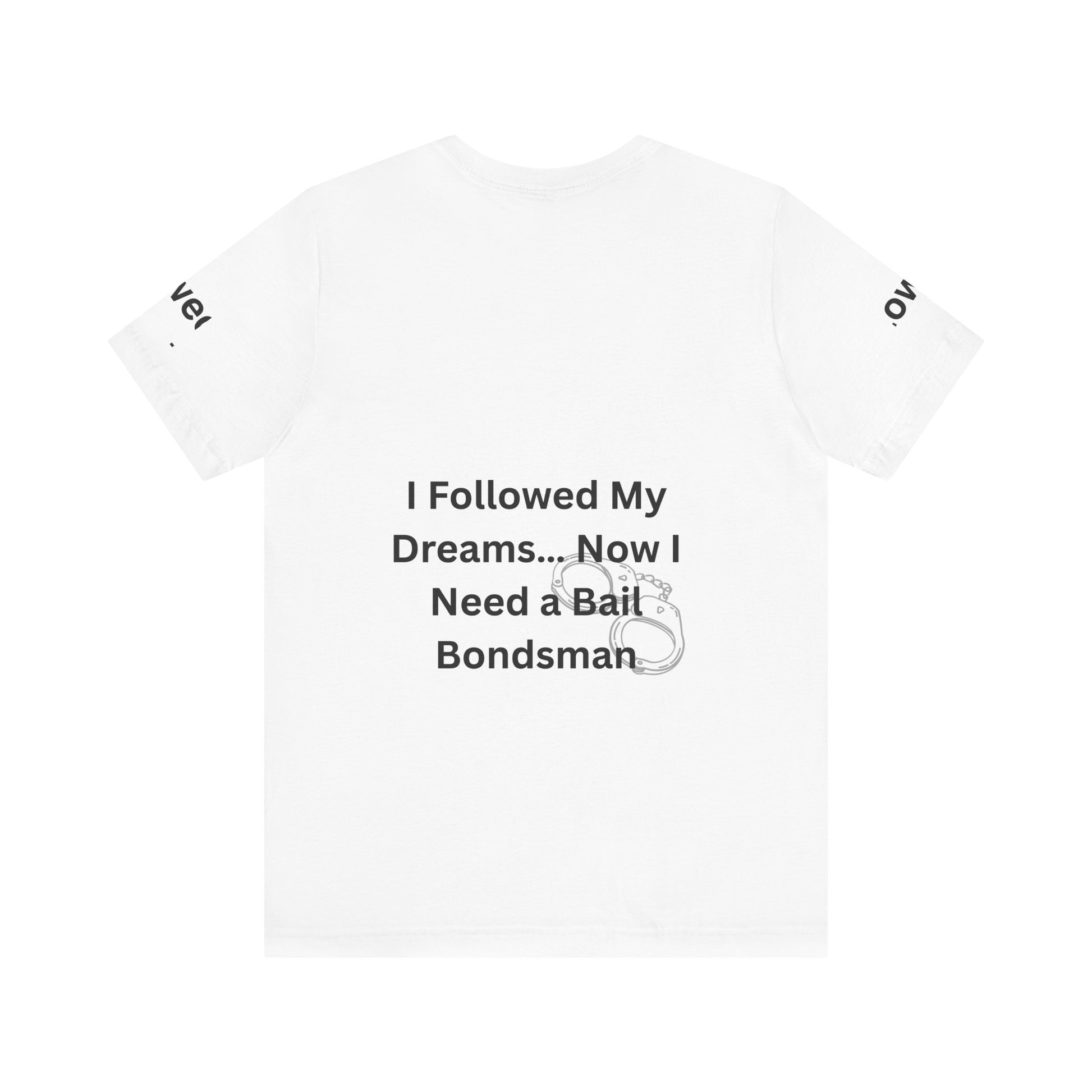 Humorous Unisex Short Sleeve Tee - 'I Followed My Dreams... Now I Need a Bait Bondsman'